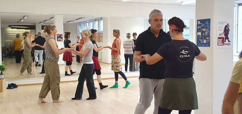 Wir arbeiten an der Technik für das Verständnis der Struktur des Tangotanzes. Tänzer aller Lernstufen finden hier ein Feld, um konzentriert und entspannt zu lernen. Wir erkennen und